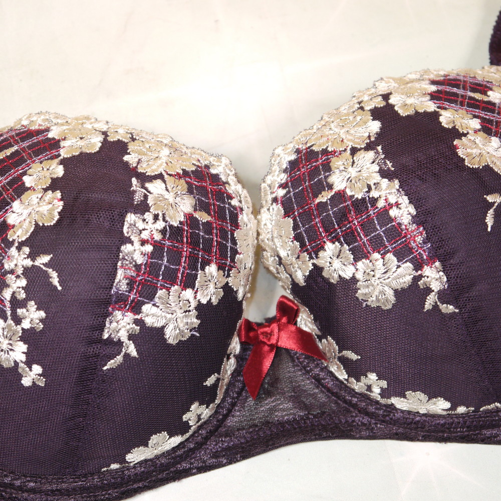 【ABランク/未使用?】Wing:D80*98 ★ KIREI!深紫×チェックレース刺繍 ロリっとキュートブラ 希少80