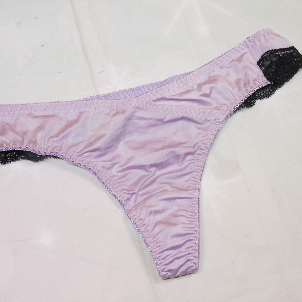 【ABランク/未使用?】:Mサイズ ★ 甘サテン×ラベンダー 人気V型 ギャル系パンティ Tバック